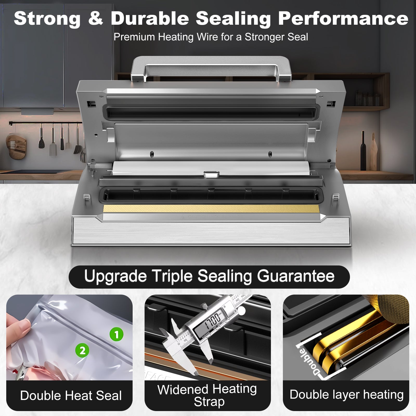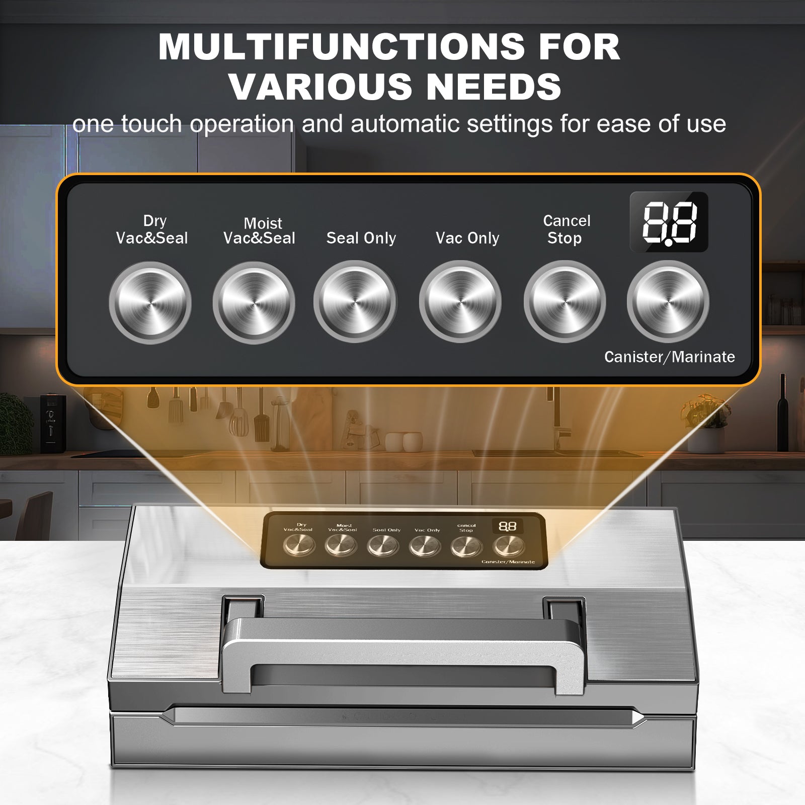 Commercial-Grade Vacuum Sealer Machine, One-Touch Operation, Powerful Sealing System with Built-in Cutter, Includes 2 Bag Rolls & Hose, Ideal for Sous Vide & Bulk Food Storage